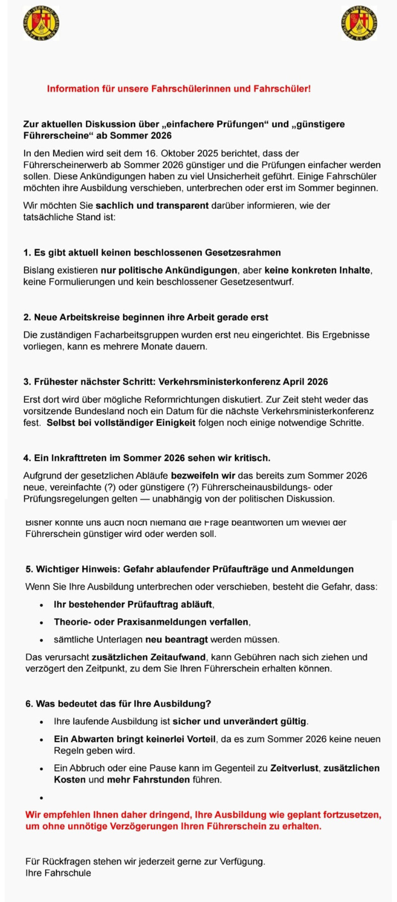 - modernste Fahrzeuge und aktuellste Ausstattung der Fahrschulen